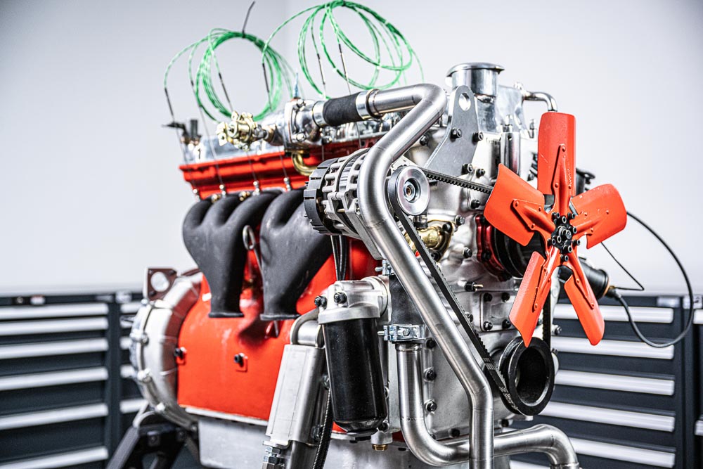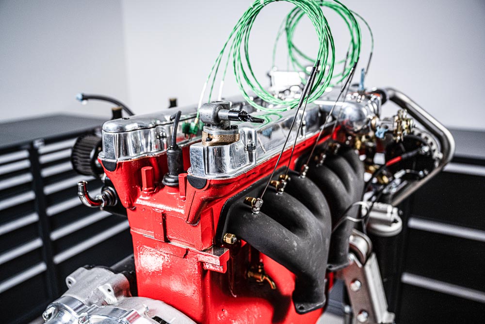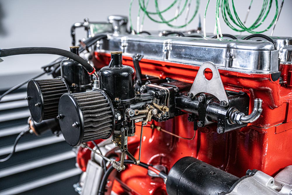 - Synchronisierung und Abstimmung der SU-Vergaser inkl. Leerlaufeinstellung. Um die Abstimmung zu erleichtern, wurde für jeden Zylinder im Krümmer eine Abgastemperaturmessstelle installiert. Außerdem wurde pro Hosenrohr eine Lambdasonde eingebaut.