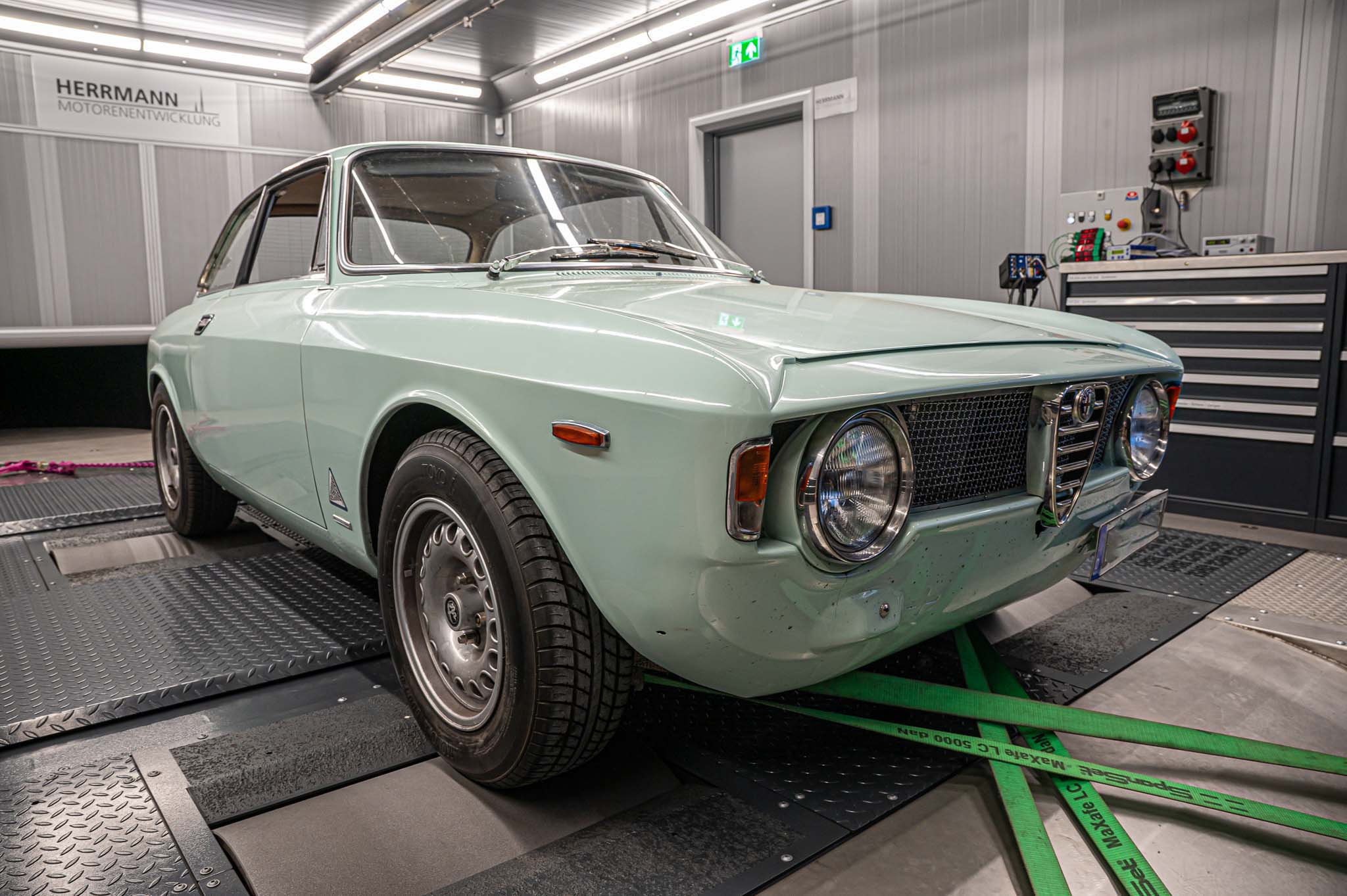 Durch die jahrelange Zusammenarbeit der Herrmann Motorenentwicklung mit der Entwicklungsabteilung von Bugatti konnten wir einen Prüfstandsaufbau für einen Bugatti Chiron auf unserem Allrad-Scheitelrollen-Leistungsprüfstand realisieren.