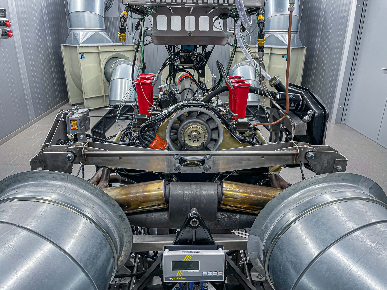 Der abgestimmte Motor wurde in das Fahrzeug montiert und in Betrieb genommen. Zur finalen Überprüfung der Abstimmung des Motors im Fahrzeug wurde das gesamte Fahrzeug auf unserem Scheitelrollenprüfstand in allen Last- und Drehzahlbereichen getestet, sowie die Lambda- und Temperaturwerte des Abgases überwacht und damit sichergestellt, dass der Motor im Fahrzeug eine optimale Einstellung von Einspritz- und Zündkennfeld besitzt.