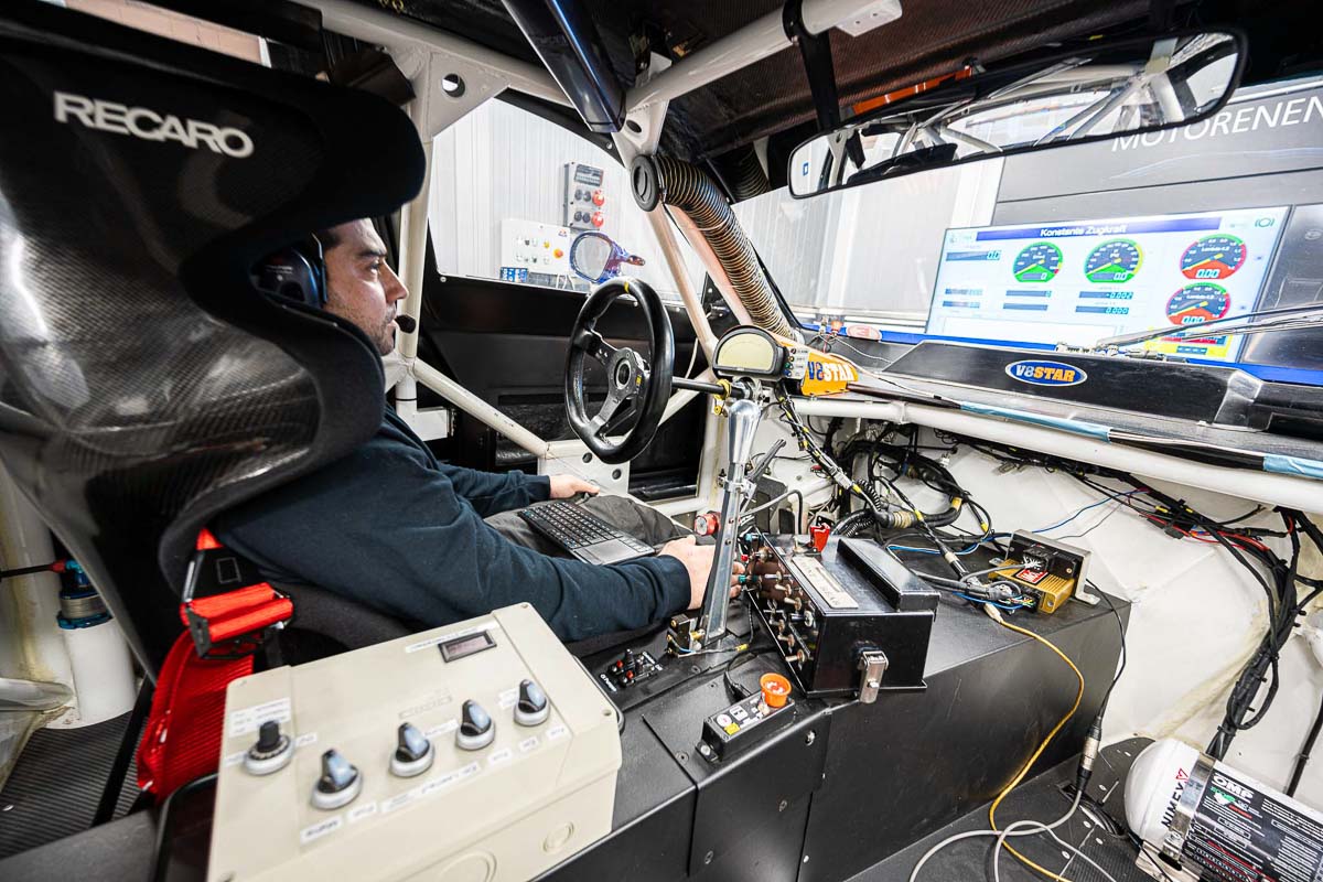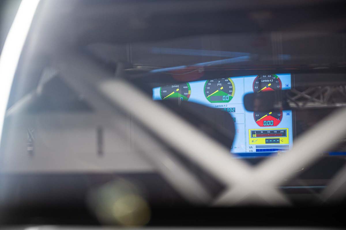 Durch die Überprüfung der Leitungen im Fahrzeugkabelbaum konnte ein Verdrahtungsfehler ausfindig gemacht werden. Im Anschluss wurde der Pit-Speed-Limiter im Motorsteuergerät nach Neuparametrierung auf unserem Allrad-Scheitelrollen-Prüfstand getestet.
